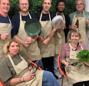 L’accueil était chaleureux, l’ambiance conviviale et vraiment amusante. Du début à la fin, tout était parfaitement orchestré, et le repas que nous avons réalisé – de l’entrée au dessert – était tout simplement délicieux (j’ai repris de tout !). J’ai vraiment passé un très bon moment et je recommande vivement cette activité" Anne et Guillaume, Novembre 2025